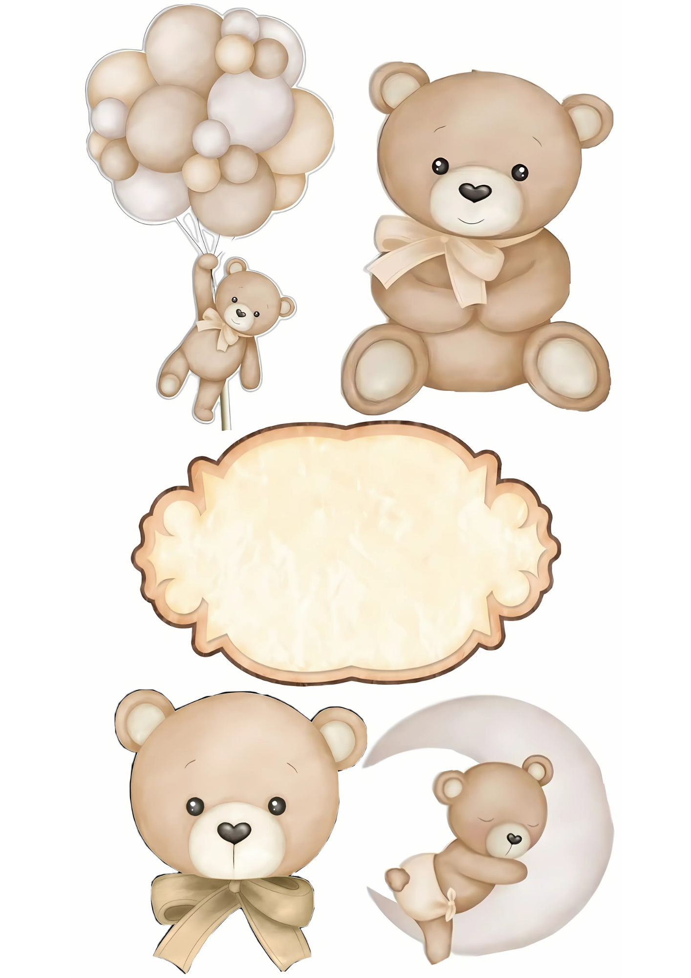 Yenilebilir Şekerli Kağıt Baskısı Cupcake ve Pasta Resim Baskı Ayıcık Temalı 35