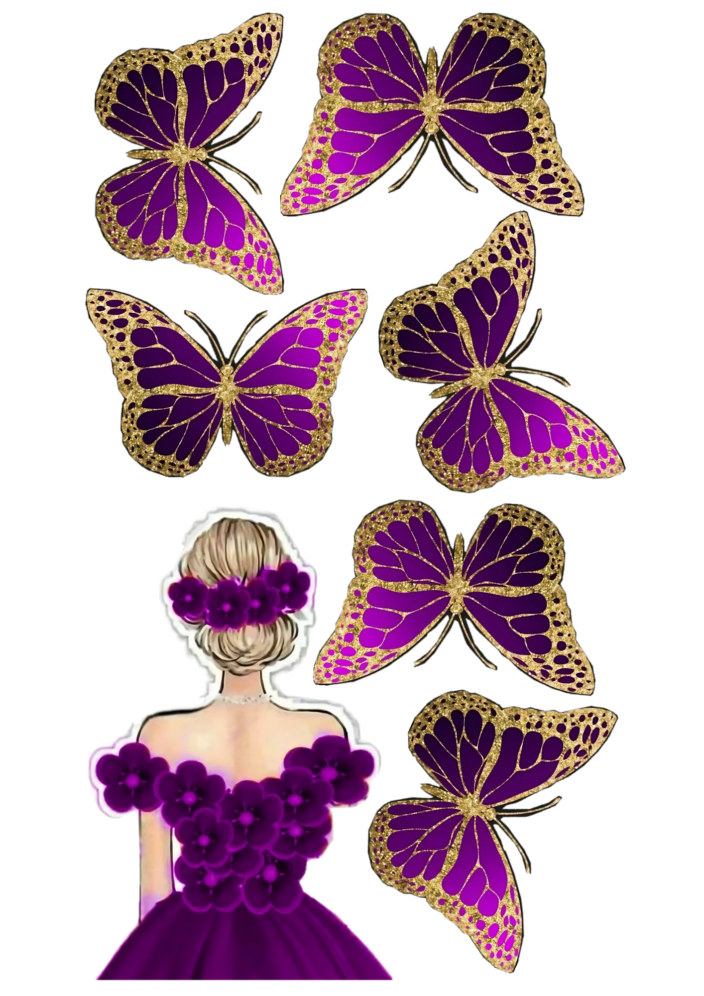 Yenilebilir Şekerli Kağıt Baskısı Cupcake ve Pasta Resim Baskı Kelebek ve Kız Temalı 20