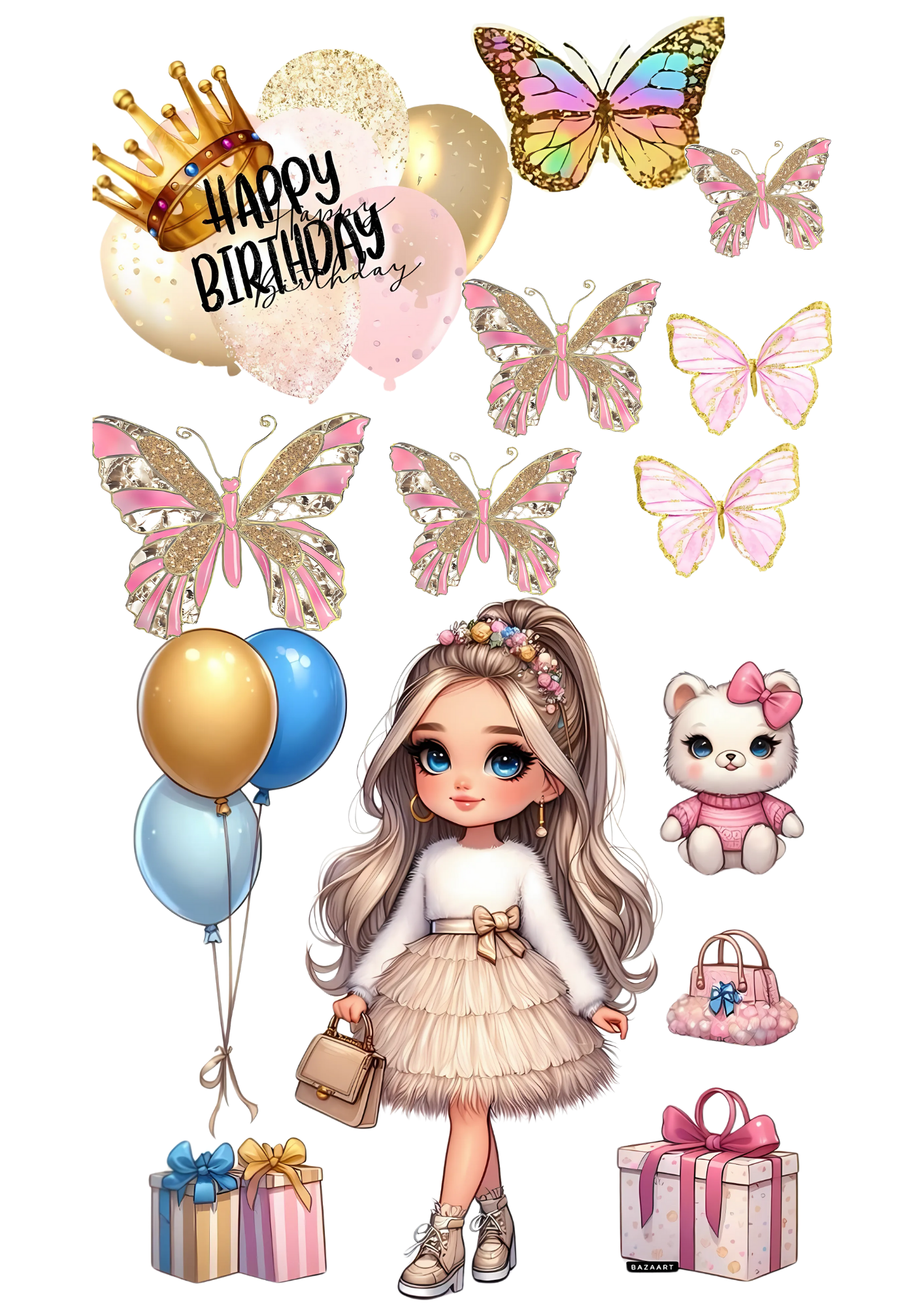 Yenilebilir Şekerli Kağıt Baskısı Cupcake ve Pasta Resim Baskı Kelebek ve Kız Temalı 43