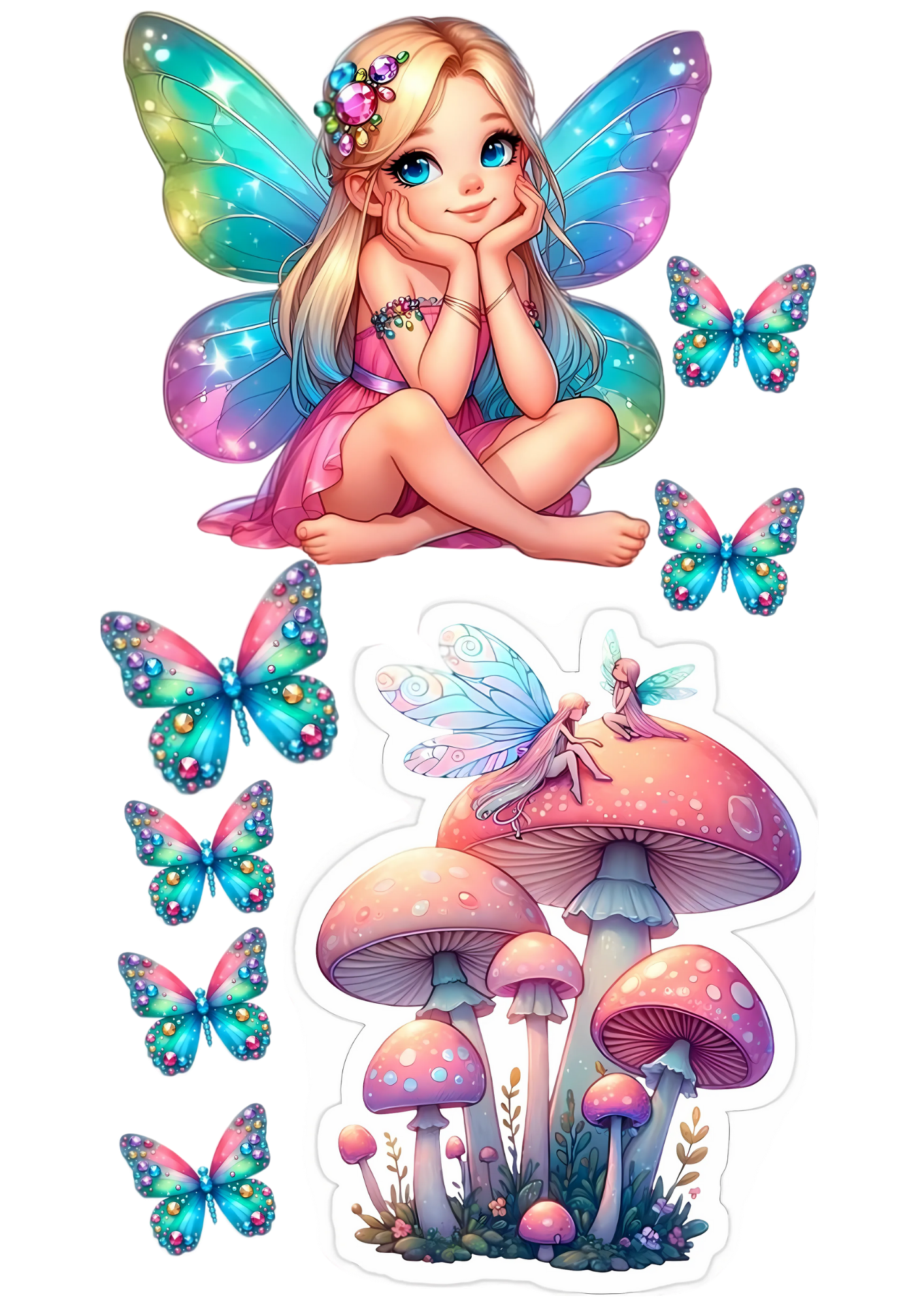 Yenilebilir Şekerli Kağıt Baskısı Cupcake ve Pasta Resim Baskı Peri Kız Temalı 30