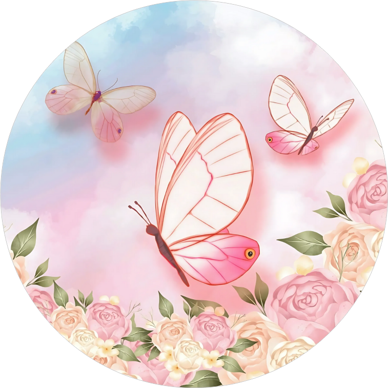 Yenilebilir Yuvarlak Pasta Resim Baskısı 20 cm Şekerli Kağıt Kelebek Temalı 60