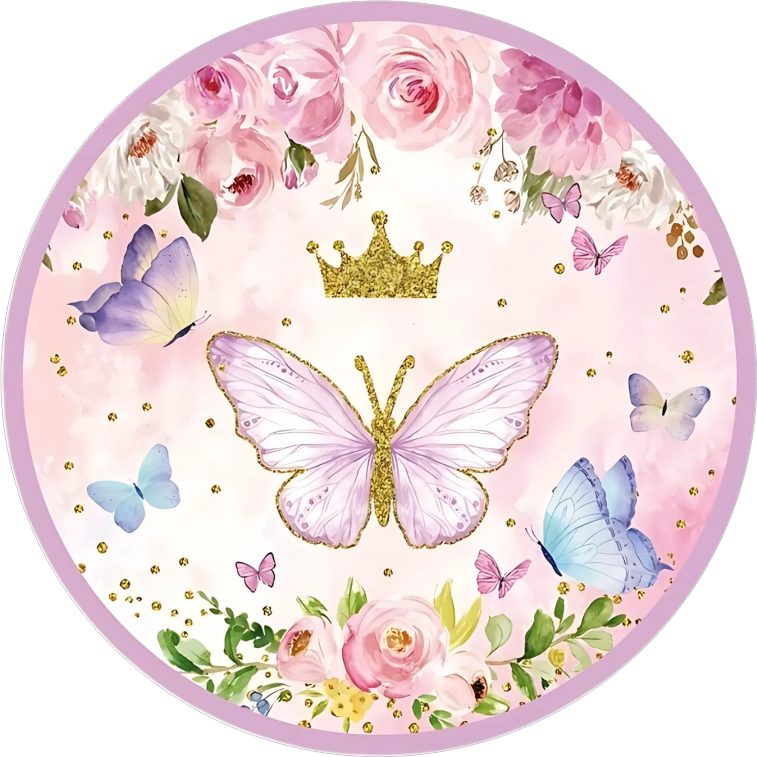 Yenilebilir Yuvarlak Pasta Resim Baskısı 20 cm Şekerli Kağıt Kelebek Temalı 62