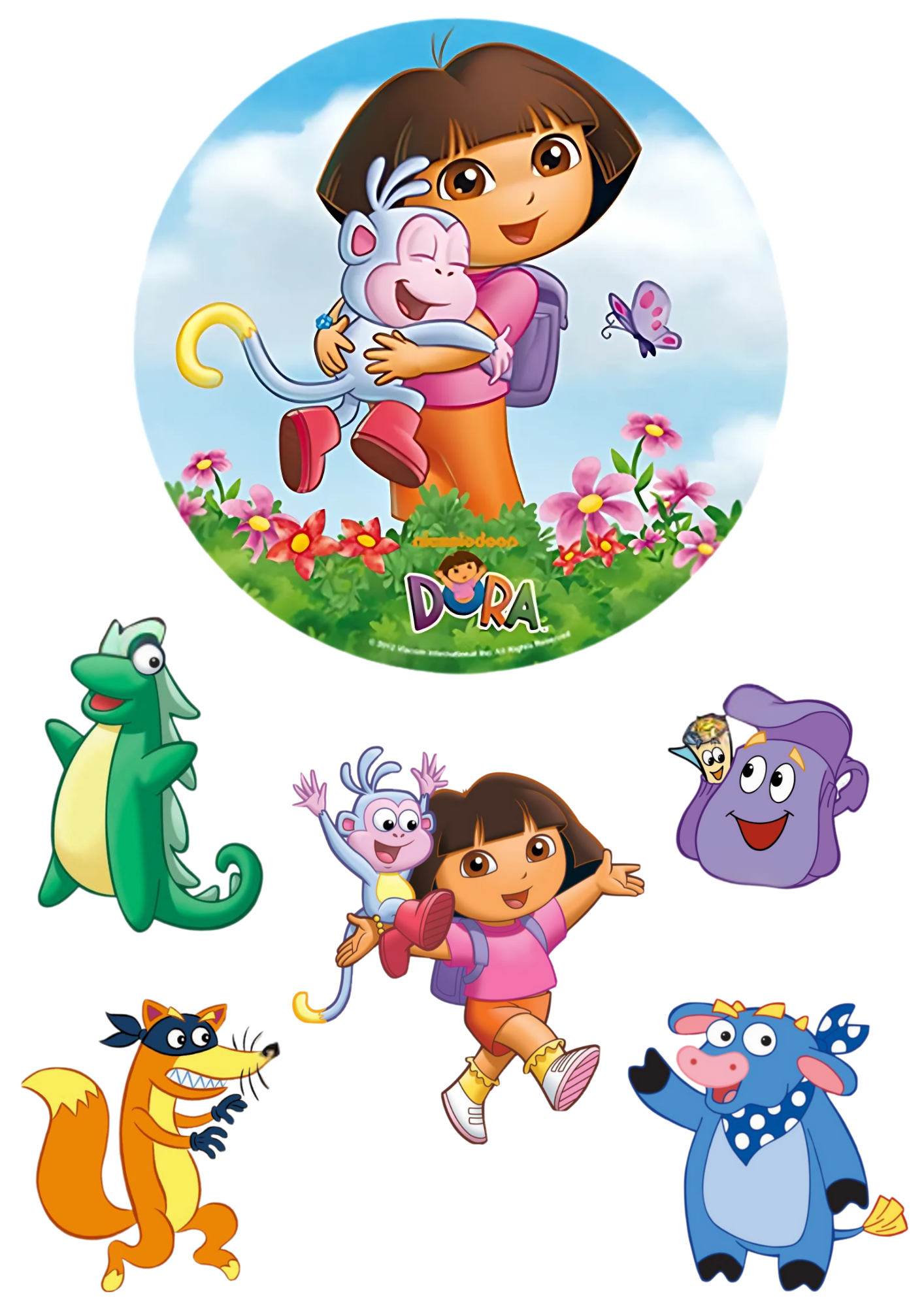 Yenilebilir Yuvarlak Pasta ve Figür Resim Baskısı Şekerli Kağıt Dora Temalı 41