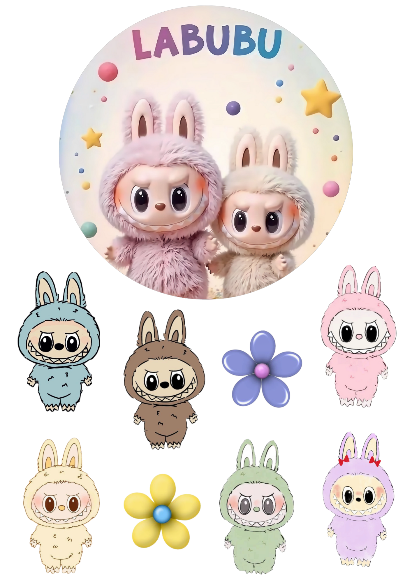 Yenilebilir Yuvarlak Pasta ve Figür Resim Baskısı Şekerli Kağıt Labubu Temalı 42