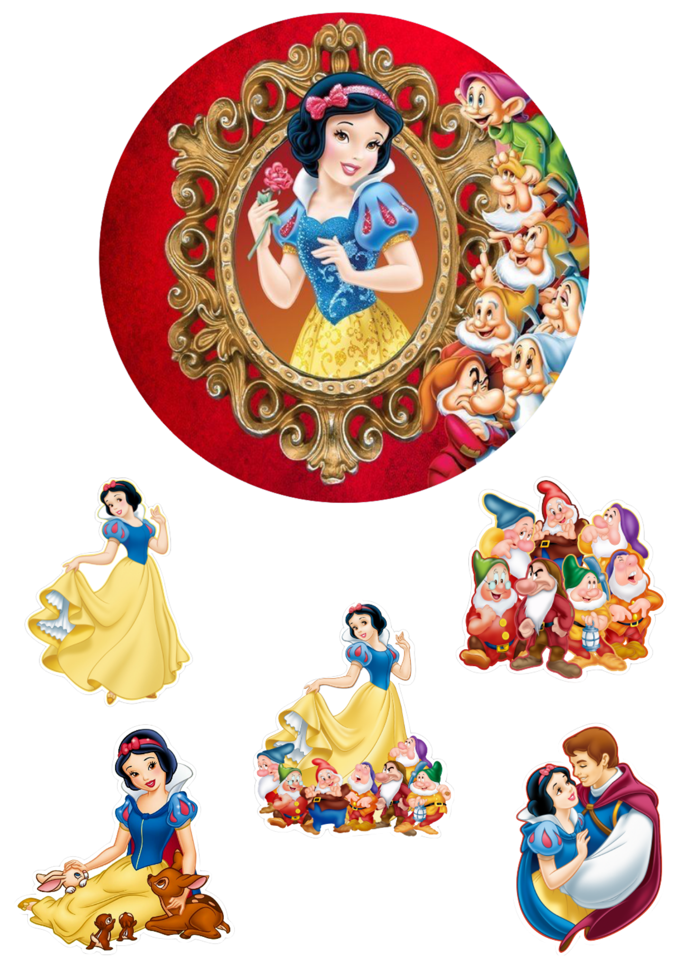 Yenilebilir Yuvarlak Pasta ve Figür Resim Baskısı Şekerli Kağıt Pamuk Prenses Temalı 17