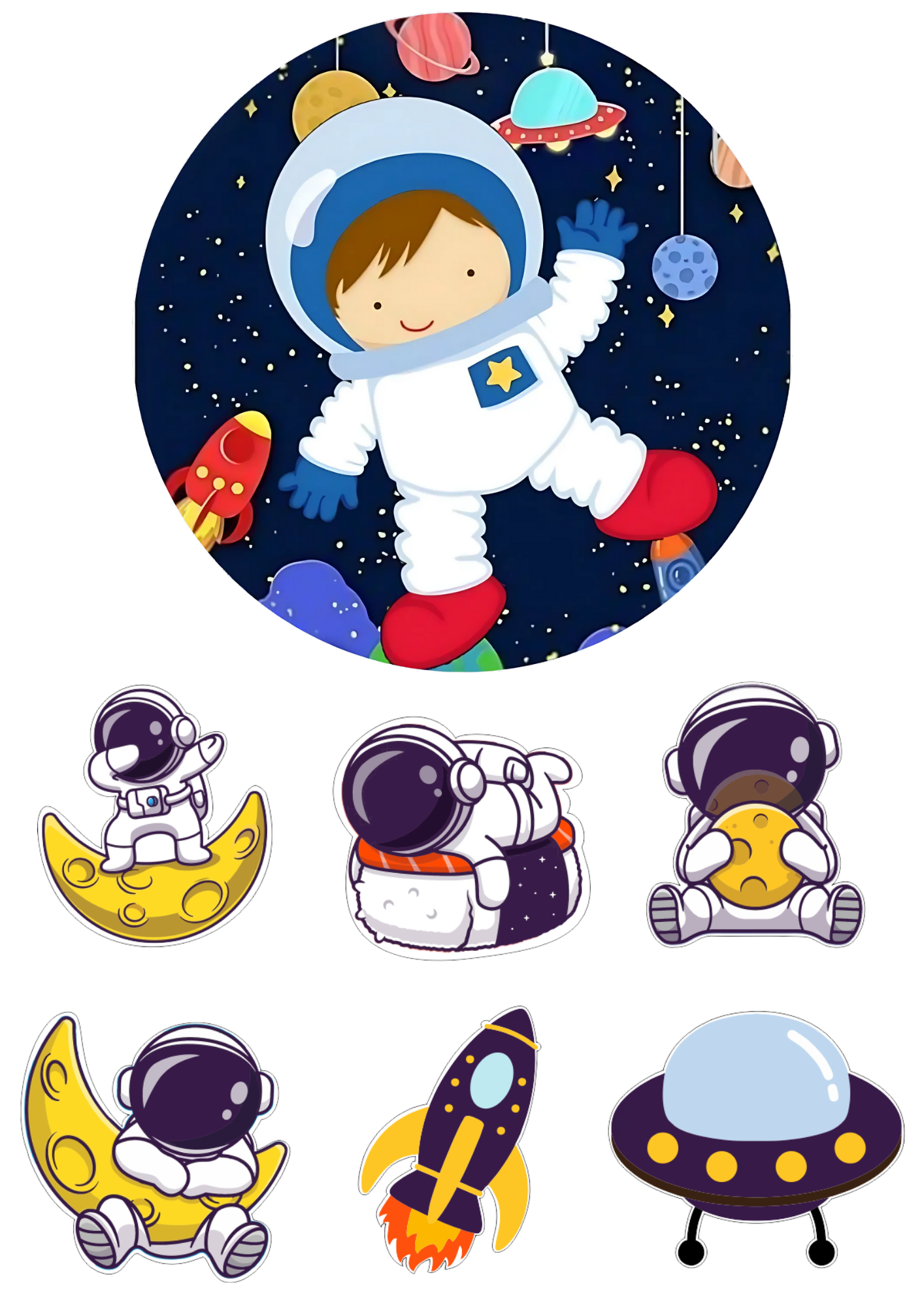 Yenilebilir Yuvarlak Pasta ve Figür Resim Baskısı Şekerli Kağıt Uzay Temalı 28