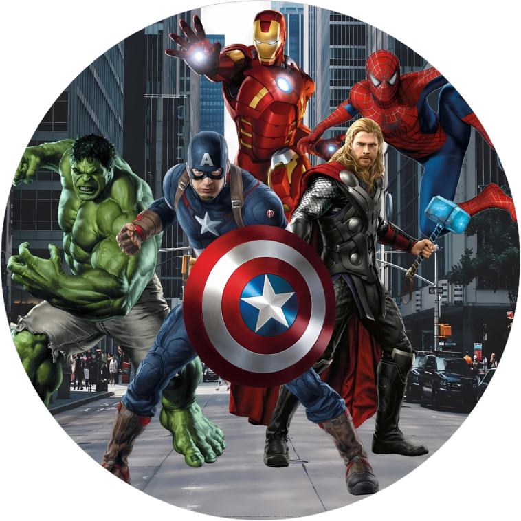 Yenilebilir Yuvarlak Pasta Resim Baskısı 20 cm Şekerli Kağıt Avangers Temalı 12