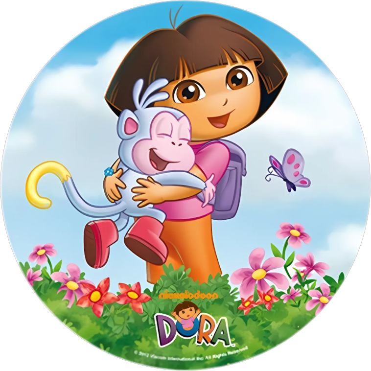 Yenilebilir Yuvarlak Pasta Resim Baskısı 20 cm Şekerli Kağıt Dora Temalı 06