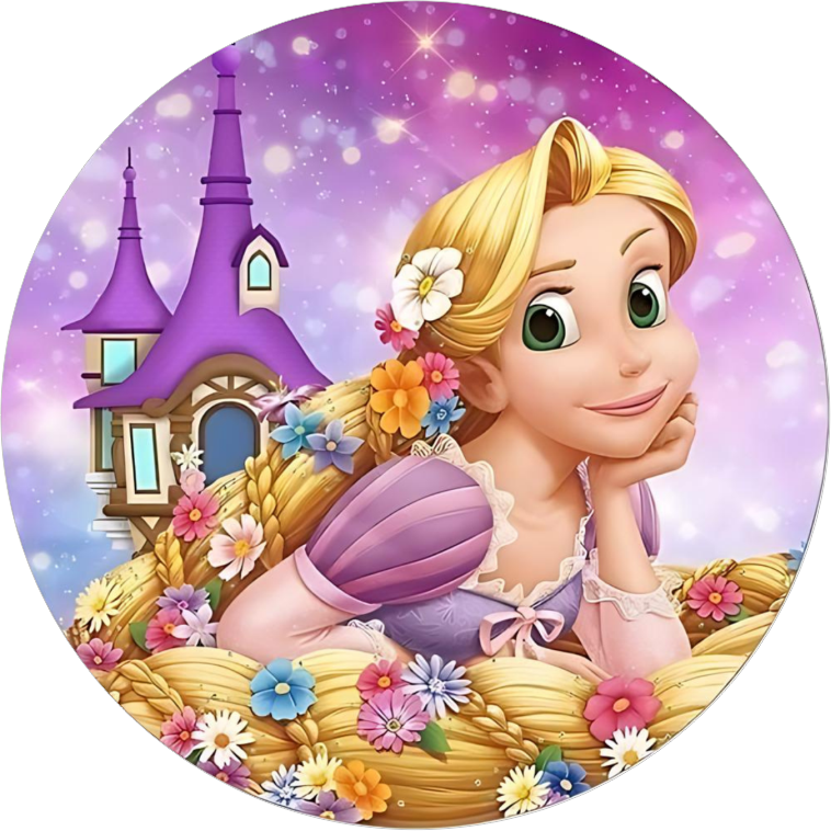 Yenilebilir Yuvarlak Pasta Resim Baskısı 20 cm Şekerli Kağıt Rapunzel Temalı 17