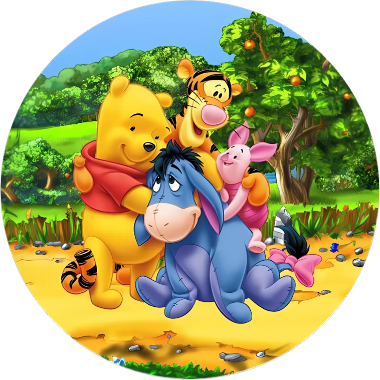Yenilebilir Yuvarlak Pasta Resim Baskısı 20 cm Şekerli Kağıt Winnie The Pooh Temalı 08